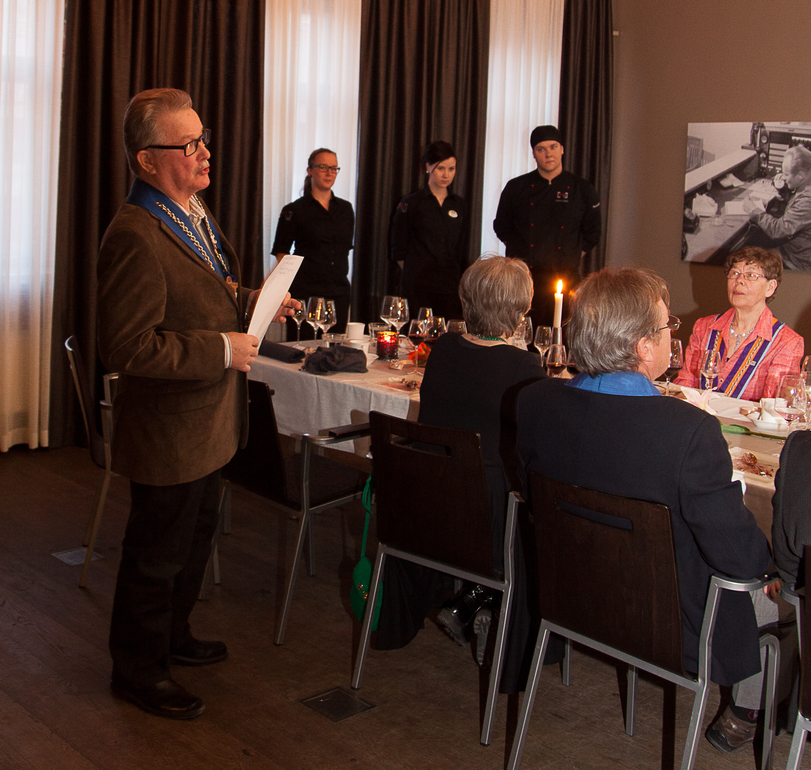 Veljesateria Grill It´ssä 11.4.2013 Tou11 by Reija Illan aluksi oli infotilaisuus uusille ja vanhoillekin kapituliin lähteville. Tervetuloa! Chef de Table Hannu Eräluoto oli kutsunut meidät illalliselle. Veljesaterian puitteet olivat viehättävät. KAIKKI KUVAT SUURENEVAT KLIKKAAMALLA. Jaa: Click to share on X(Avautuu uudessa ikkunassa) X Jaa Facebookissa(Avautuu uudessa ikkunassa) Facebook Tykkää Lataa... Aiheeseen liittyy