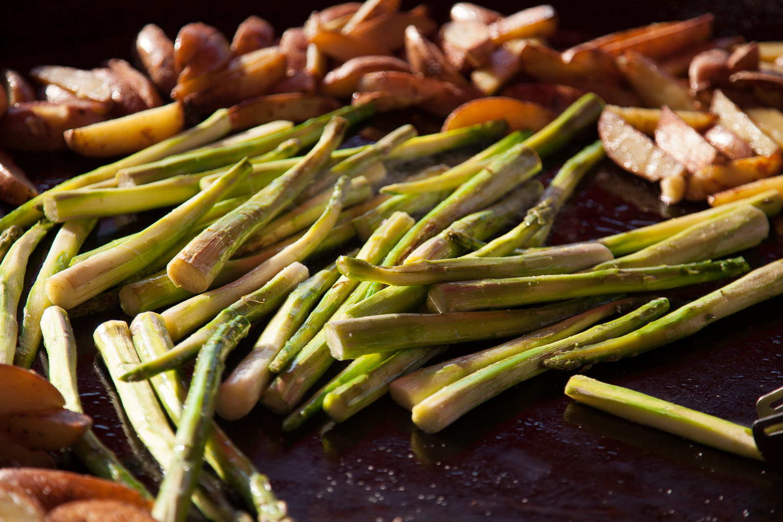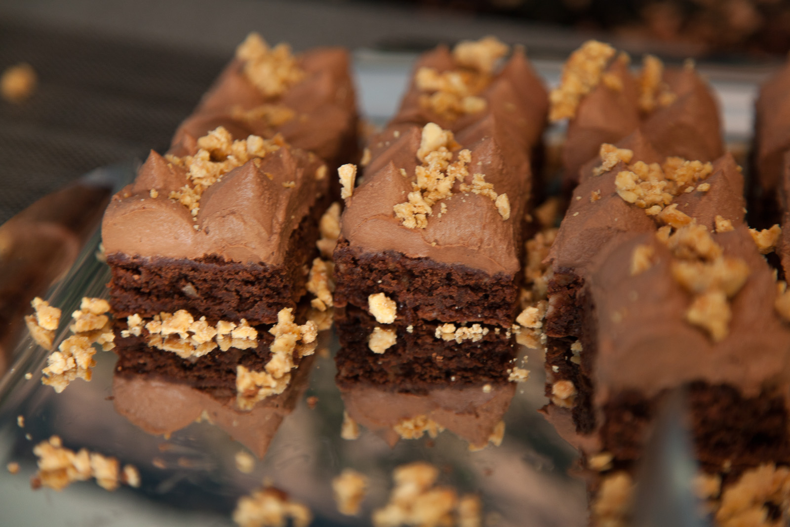 paahdetut valkosuklaamuruset ja marinoidut mansikat.