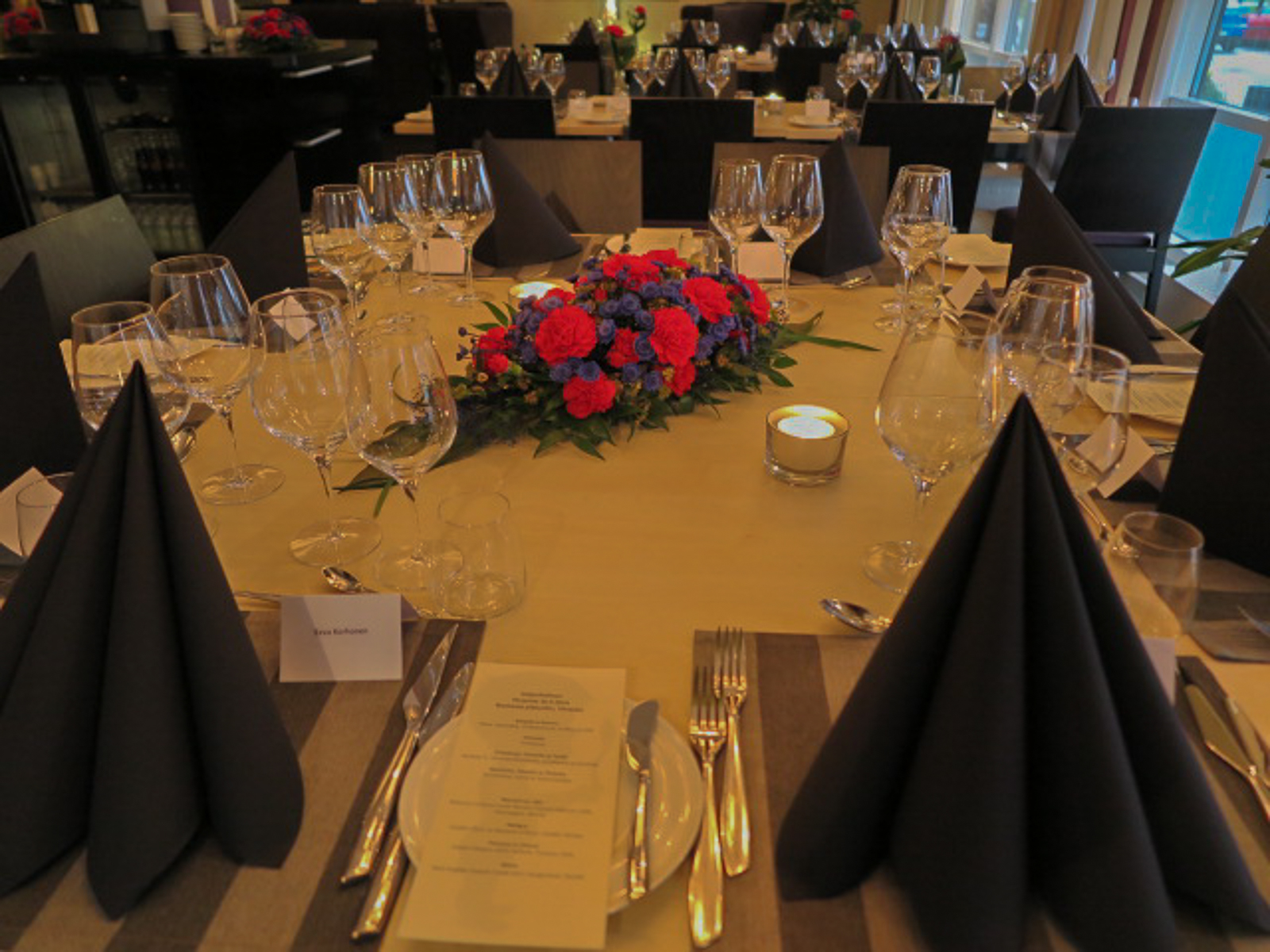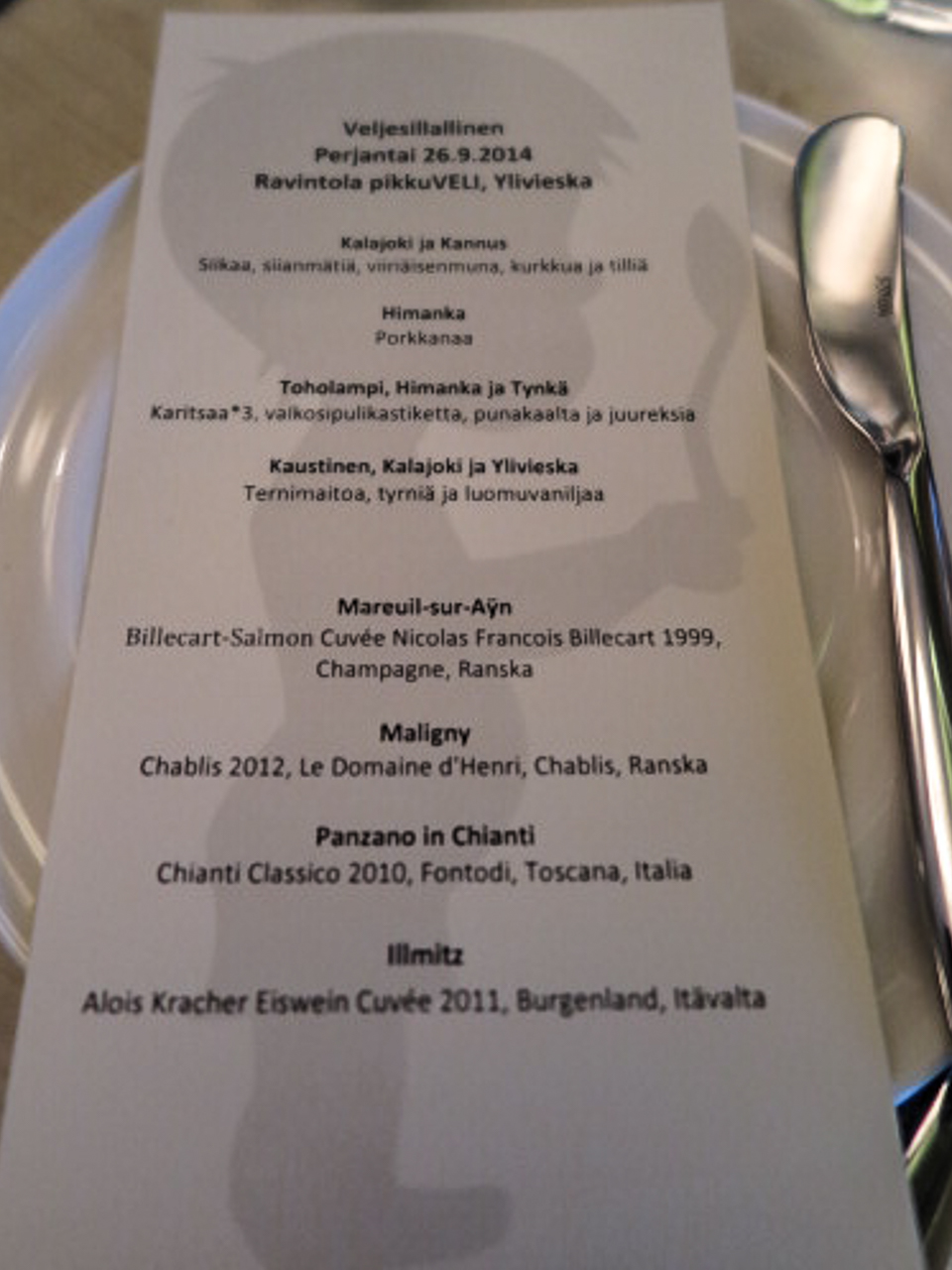 Kaikki kuvat suurenevat klikkaamalla. Myös menu-kuva. Näet mitä meille tarjottiin. Lähiruokaa oli kaikki! Viinit klassikkoja. Hieno ja hyvä illallinen oli!